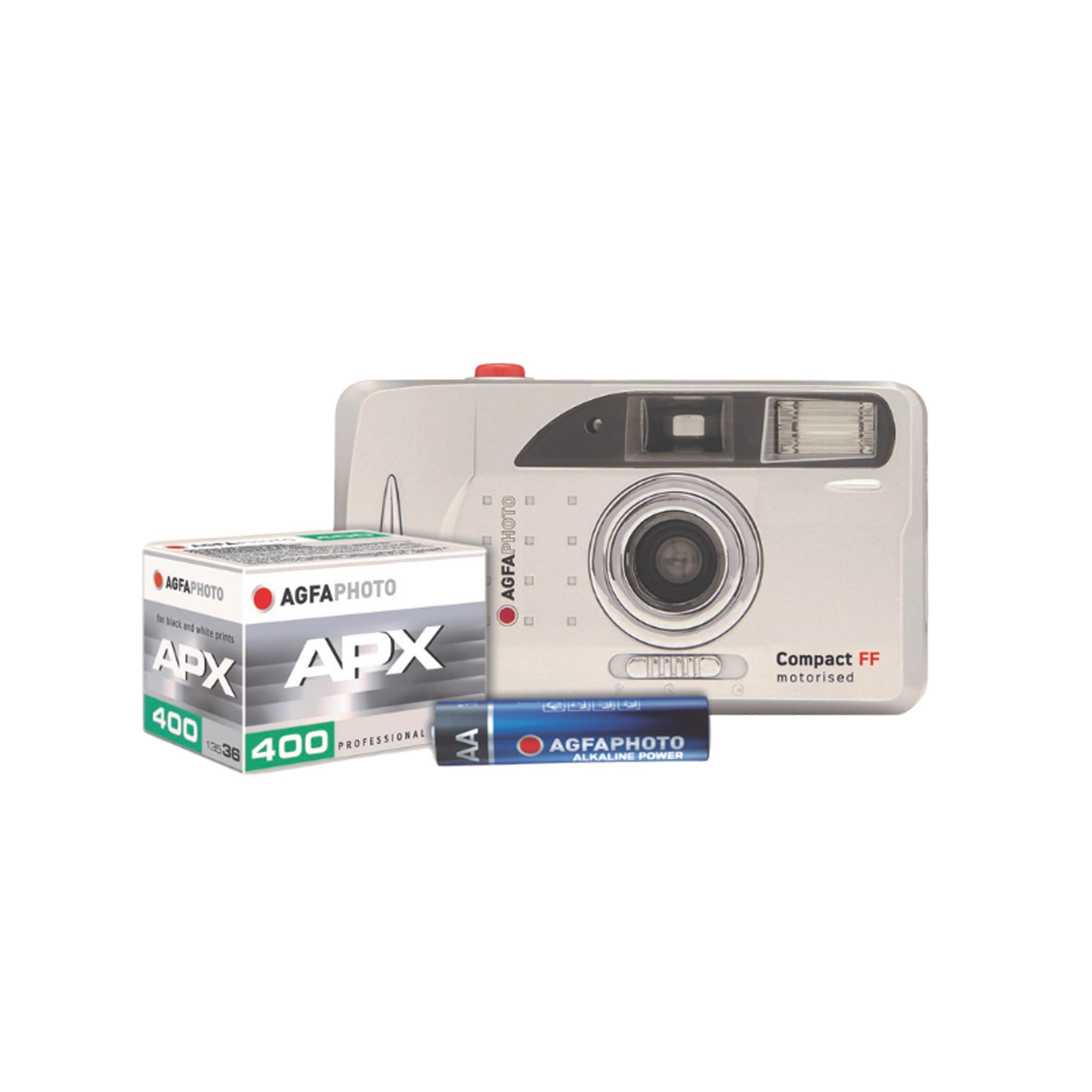 Compact and easy to use, this reusable analogue camera lets you capture unique moments with a retro touch. This pack includes 1 grey motorised film camera, 1 APX400 B&W film, 1 storage pouch and 1 battery. Take 36 vintage-style photos right out of the box!