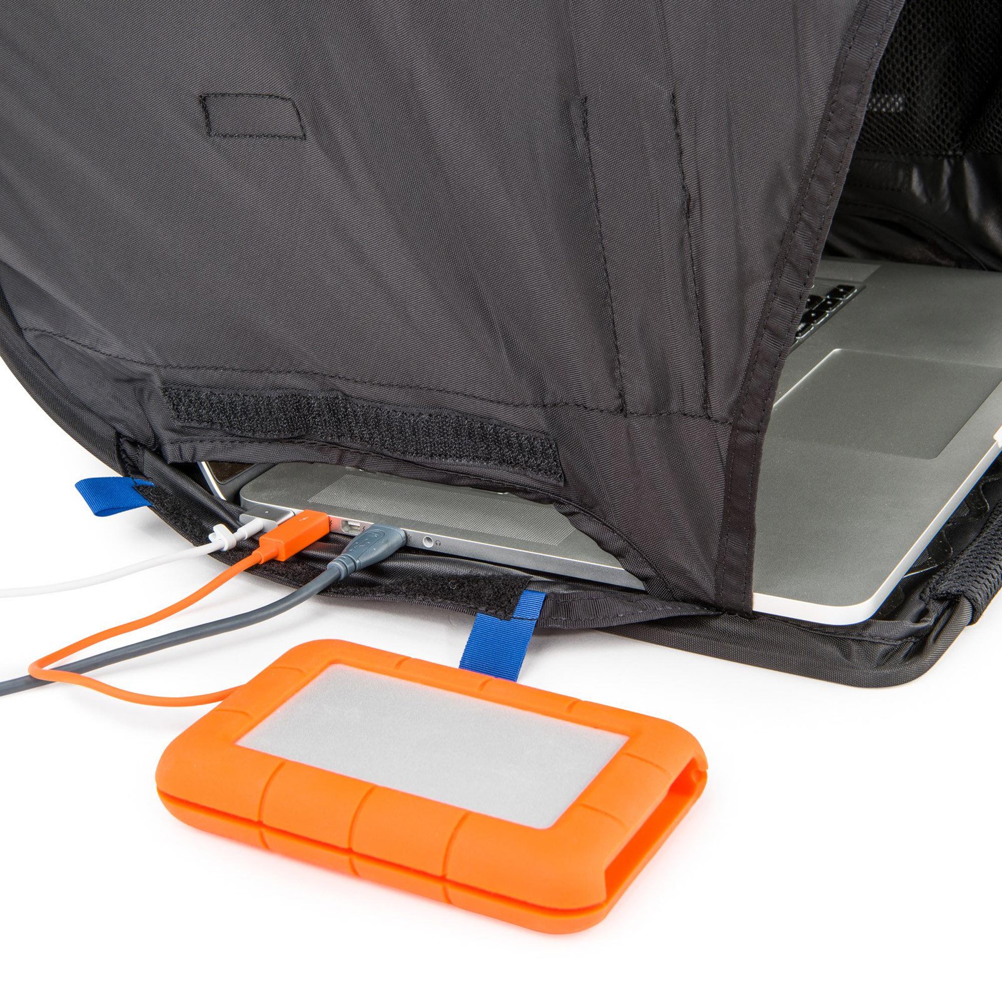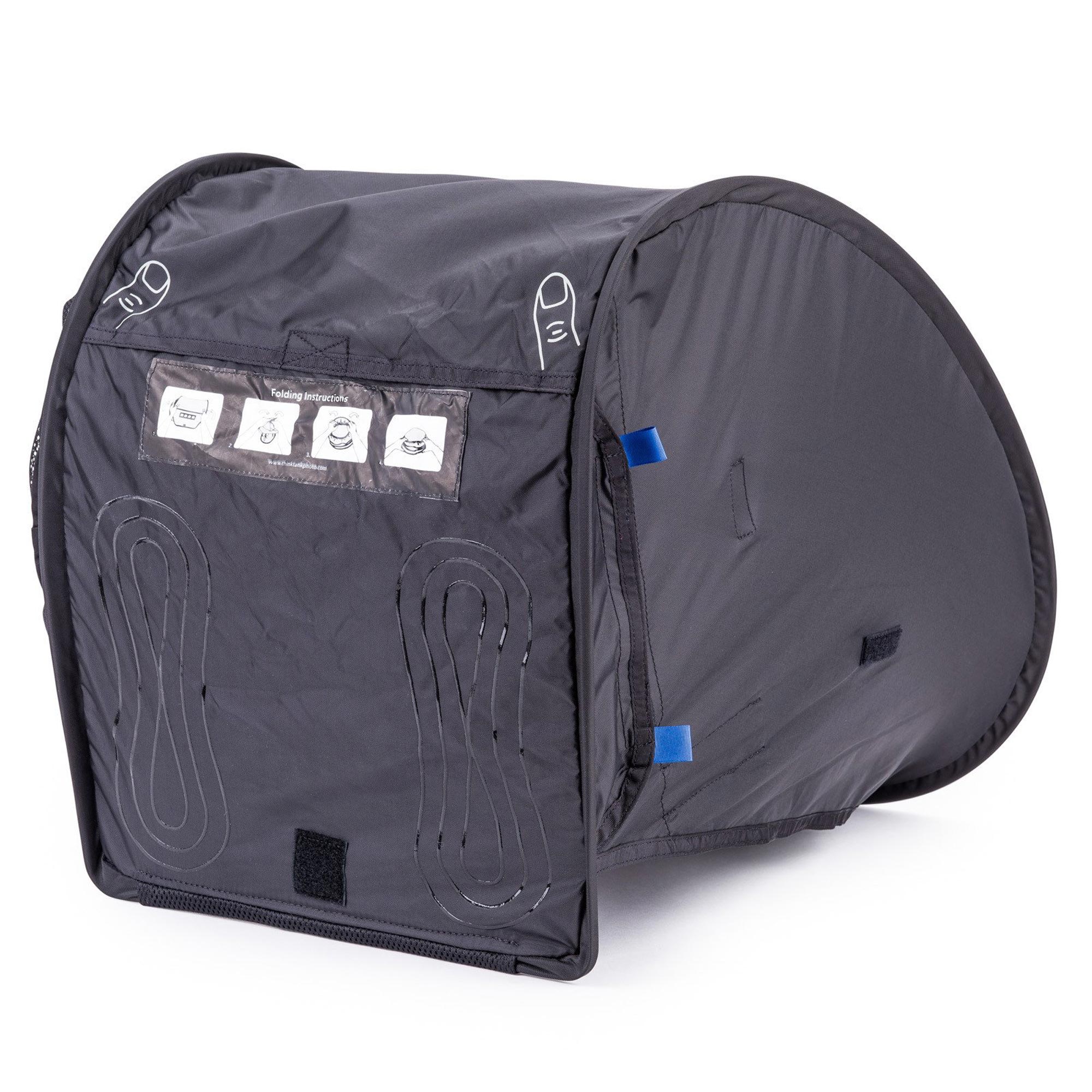 Portable sun shade for up to 17" laptops and monitors; collapses for compact storage.