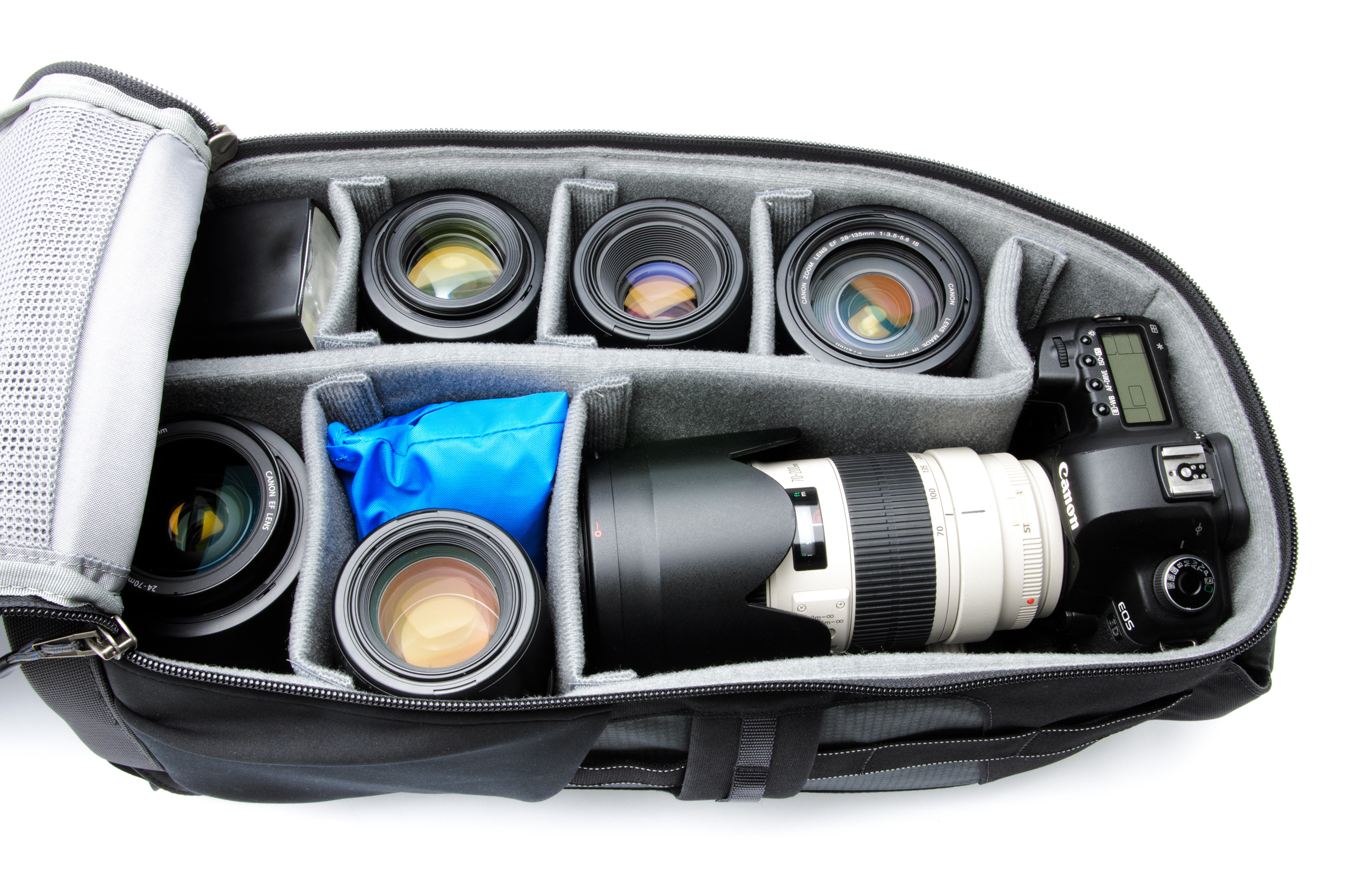 - Alternately carries a standard pro kit with pro DSLR and 5-8 lenses